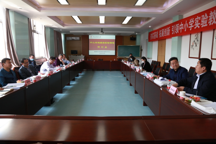 为了全面贯彻全国教育大会精神,落实教育部《关于加强和改进中小学实验教学的意见》教基[2019]16号文件精神,切实发挥师范大学为基础教育服务的责任、使命和担当,2020年4月28日上午,陕西师范大学科学教育仪器研究开发pg模拟器 在雁塔校区教学七楼举办了“中小学拓展性实验课程”研讨会。