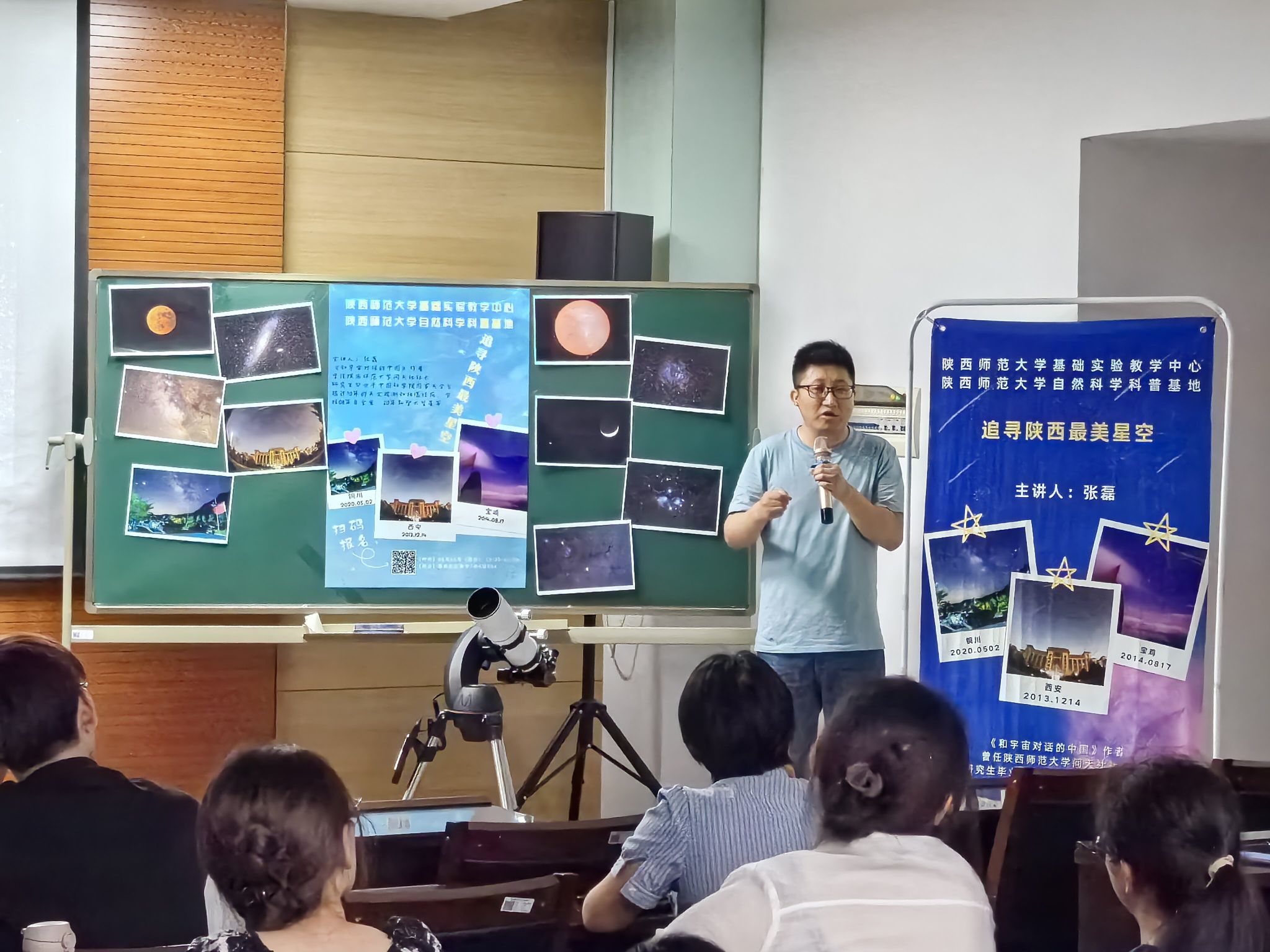 为了大力弘扬科学精神,普及科学知识,提升学生科学素养,培养创新型时代新人,2024年6月16日晚,由pg模拟器 (陕西师范大学自然科学科普基地)举办的《追寻陕西最美星空》科普讲座在教学7楼604会议室顺利举行。本次讲座向校内外公众开放,吸引了众多师生、天文爱好者以及中小学生和他们的家庭。