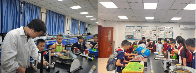 自然科学科普基地在活动当天开放科教资源展厅,由各专业老师以“讲授演示+互动体验“的方式引导孩子参与超导磁悬浮演示、摩擦静电起电机、凸(凹)透镜成像、氢气爆鸣实验、视错觉现象以及地球地形地貌模型观察等科学实验项目。