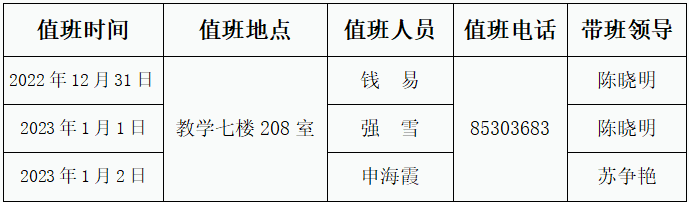 2023年元旦值班安排表
