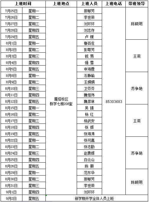 2022年暑期上班安排表
