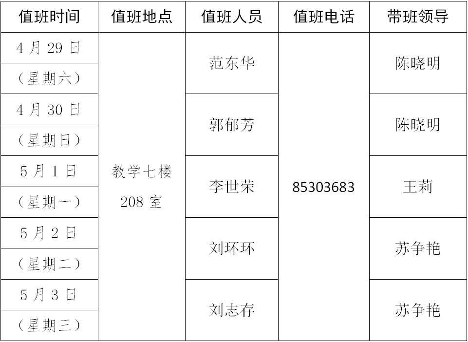 2023年劳动节值班安排表
