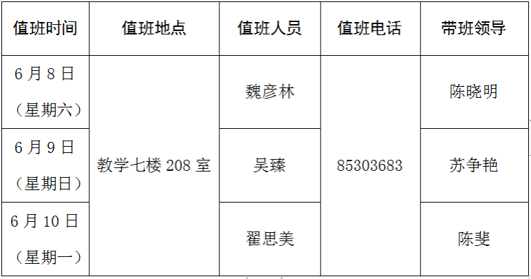 2.上班期间如遇有紧急、重要事项或突发事件,应立即联系带班领导并向学校总值班室(校务楼110室,85310005)报告并妥善处置;
